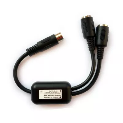 Der Y-Adapter dient zum Anschluss von 2 Mehrfachtastern mit Lichtsteuertasten oder einem anderen Rufgerät (z.B. einem Funkempfänger) auf den 7-pol. Steckanschluss von ACKERMANN-Clino-Systemen. Ausführung: Ruhestrom