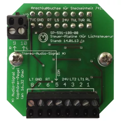 Die Steuerplatine ermöglicht zusammen mit dem passenden Birntaster für Licht-/Audio-Funktion die Lichtsteuerfunktion für zwei Lampen (z.B. Bettenleuchte).