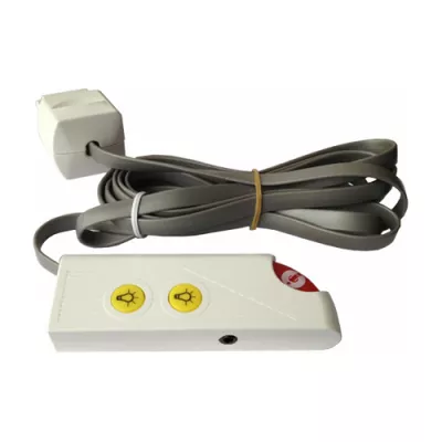Der Birntaster mit selbstlösendem Stecker für Licht- und Audio-Anwendung dient als einfaches Rufgerät mit der Möglichkeit der zusätzlichen Nutzung einer externen Audio-Quelle sowie der Steuerung einer Betten- und Raum-Leuchte (zusammen mit einer externen Steuer-Platine). Die Grundlautstärke wird durch die zusätzl. erforderliche Steuer-Platine SP-593-189-00 angehoben, die Verstärkungsregelung erfolgt direkt an der Audio-Quelle.