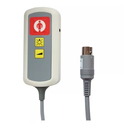 Der Birntaster mit 7-poligem Stecker für Licht- und Audio-Anwendung dient als einfaches Rufgerät mit der Möglichkeit der zusätzlichen Nutzung einer externen Audio-Quelle sowie der Steuerung einer Betten- oder Raum-Leuchte (zusammen mit einer externen Steuer-Platine).