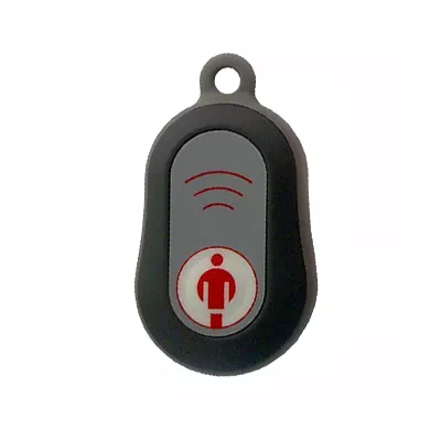 Der Funk-Medaillonsender dient zur mobilen Auslösung von Rufen innerhalb von Bewohner-Zimmern. Er wird zusammen mit dem Funkempfänger Typ FE-099-142-... zur Aufschaltung auf Ackermann-Rufanlagen verwendet. Das formschöne Gehäuse erlaubt die Befestigung des Senders an einem Schlüsselbund. Durch eine optional verfügbare Schlaufe kann er auch um den Hals getragen werden.